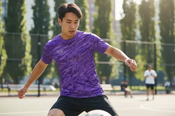- Tissu technique respirant : conçu pour évacuer la transpiration et garder les joueurs au sec pendant l’échauffement.
